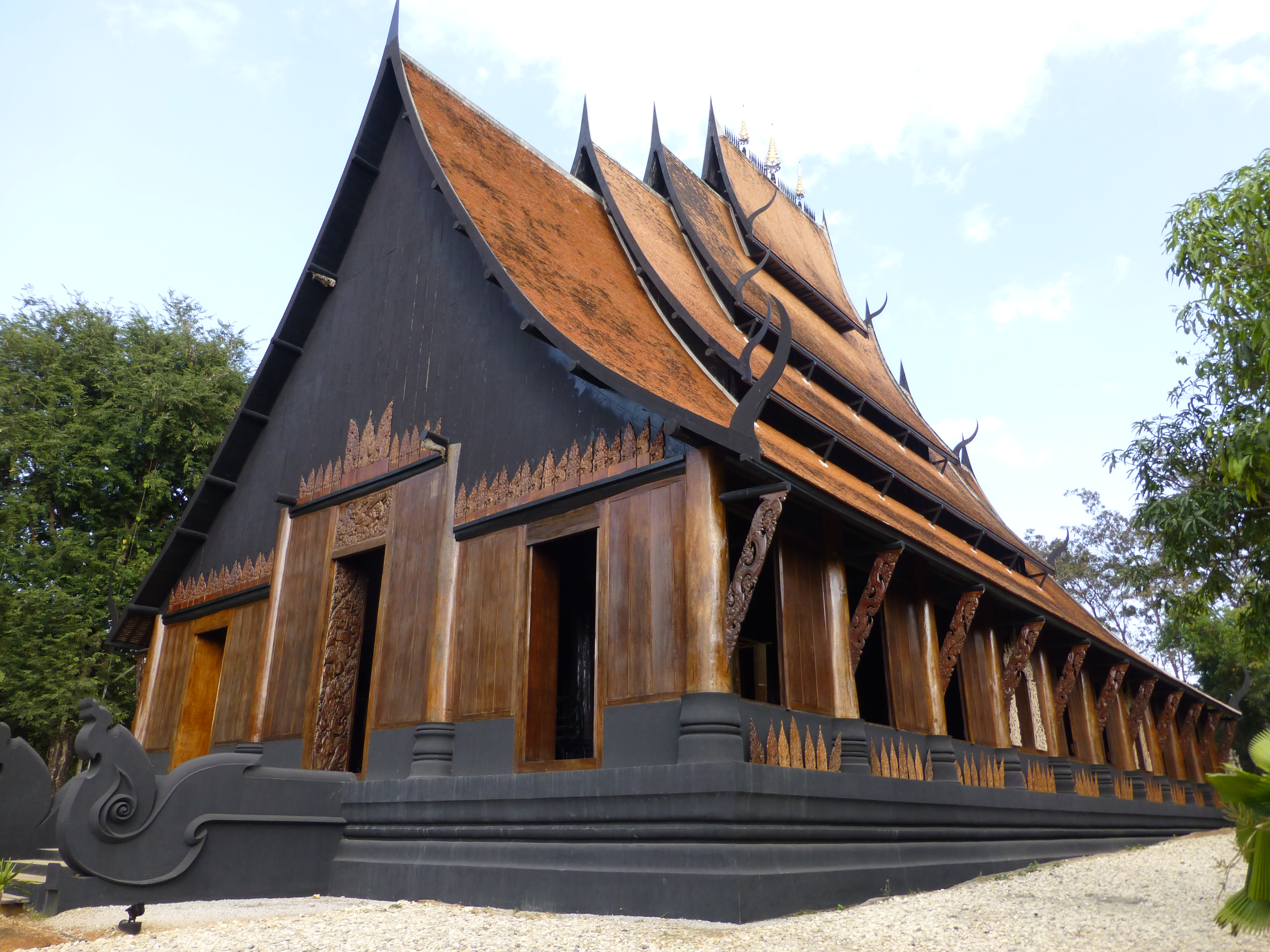 Découverte bien attendue du site des Temples noirs de l’artiste Thawan Duchanee. Je n’ai jamais rien vu de semblable! Le travail de sculpture du teck de l’artiste et de ses artisans est des plus exceptionnels. Son art lui a valu une renommée internationale mais aussi de nombreuses controverses dans son pays d’origine, comme sa relation avec la nature morte est disons assez particulière. Parmi ses collections personnelles, parfois très brutes, on y retrouve entre autres d’immenses chaises en cornes de buffles ; des tapis en peaux de crocodiles, serpents, tigres, ours et vaches ; des carapaces de tortues ; des mâchoires de requins et de crocodiles ; des crânes de buffles et d’immenses coquillages, etc..