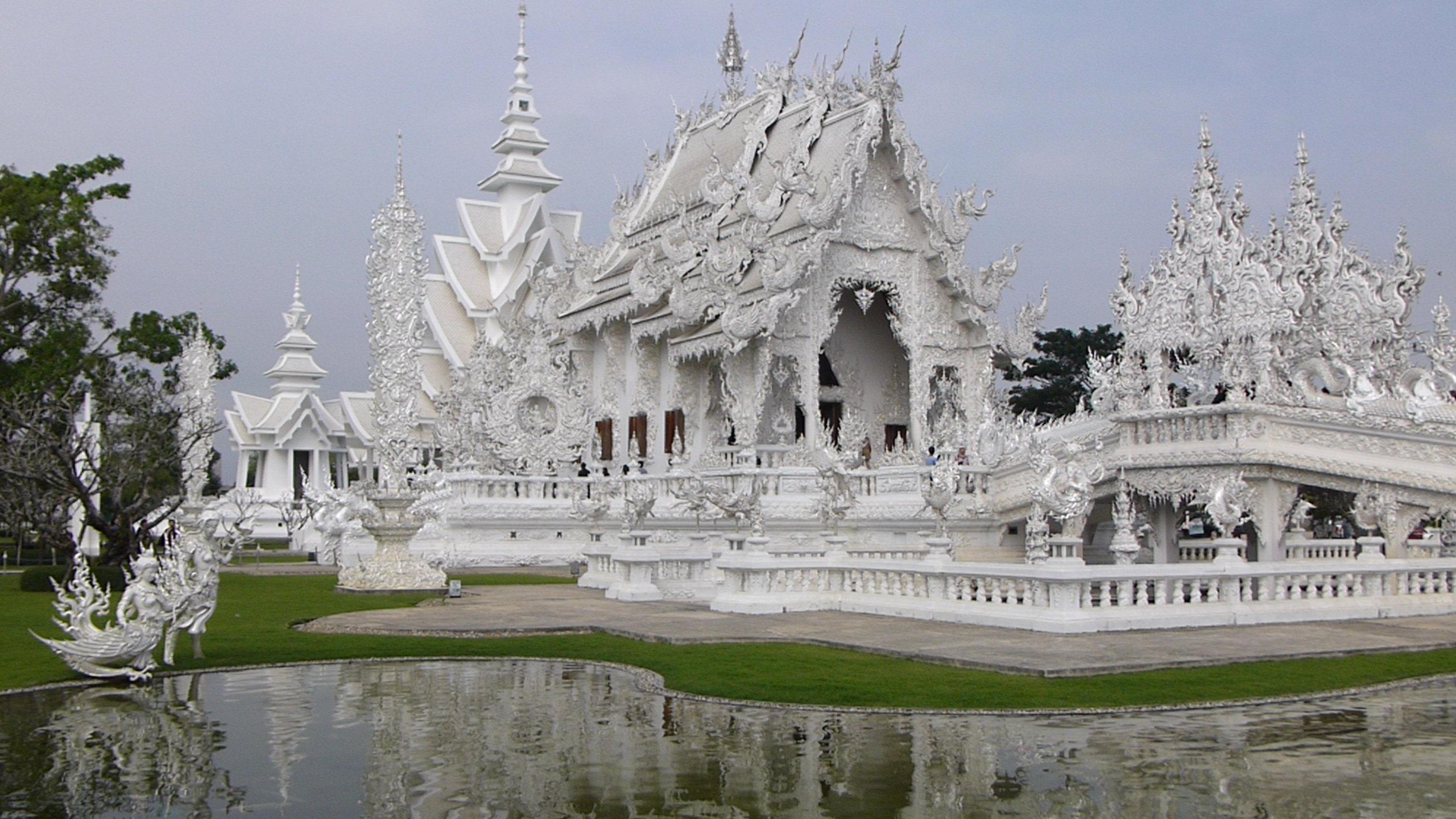 À ne pas manquer, même si certains pensent que ce temple blanc a des allures quelque peu “kitsch”, le Wat Rongkhun de Chiang Rai conçu par l’artiste bien charismatique Chalermchai Khositpipa. Un superbe ensemble de dentelle blanche et de pieces de miroir, entouré de bassin peuplé d’immenses carpes japonaises. Autour du temple ressortent des mains venant comme de l’enfer. Les fresques murales intérieures sont peintes avec beaucoup d’humour, discutant aussi du monde moderne, empêchant le passage vers le nirvana ou le bien-être. Les oeuvres de l’artiste, que Mike aura la chance de rencontrer, ont des influences à l’opposé les unes des autres.